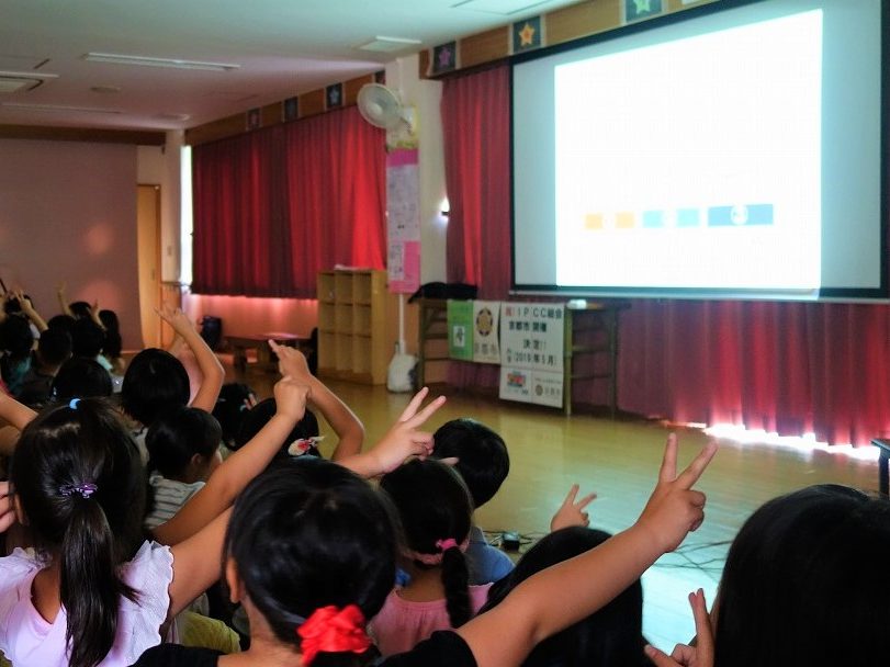 | 内容 | 電子紙芝居(えこくんのチャレンジ「ごみを助けよう」) ・実演「ペットボトルの分別」わけわけごみ分けゲーム(3年生環境係) ・リユース工作(牛乳パックのヨーヨー) |