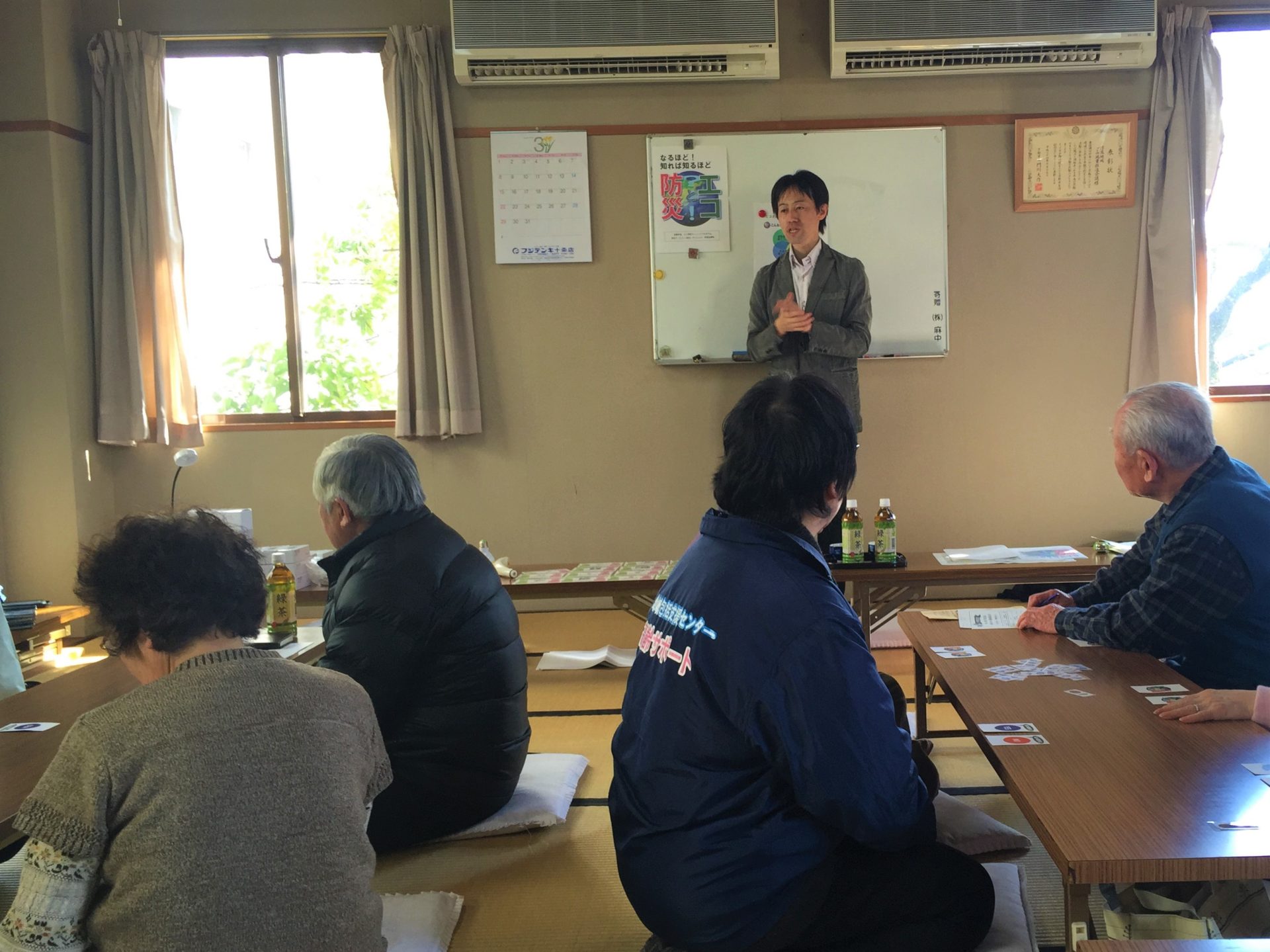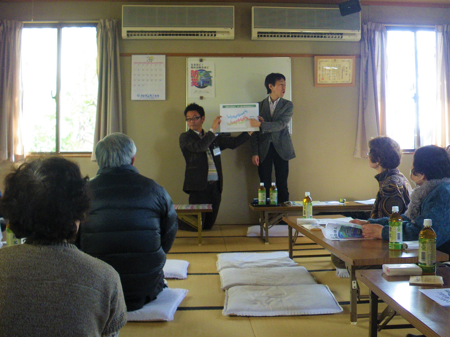 | 様子 | 気候変動問題の概要と災害との関係について資料を用いて説明した後, 5人ずつのグループに分かれてクロスロードゲームを実施しました。終了後には各家庭でエコ防災の取組の実践と情報発信を行うよう呼び掛けました。 |
