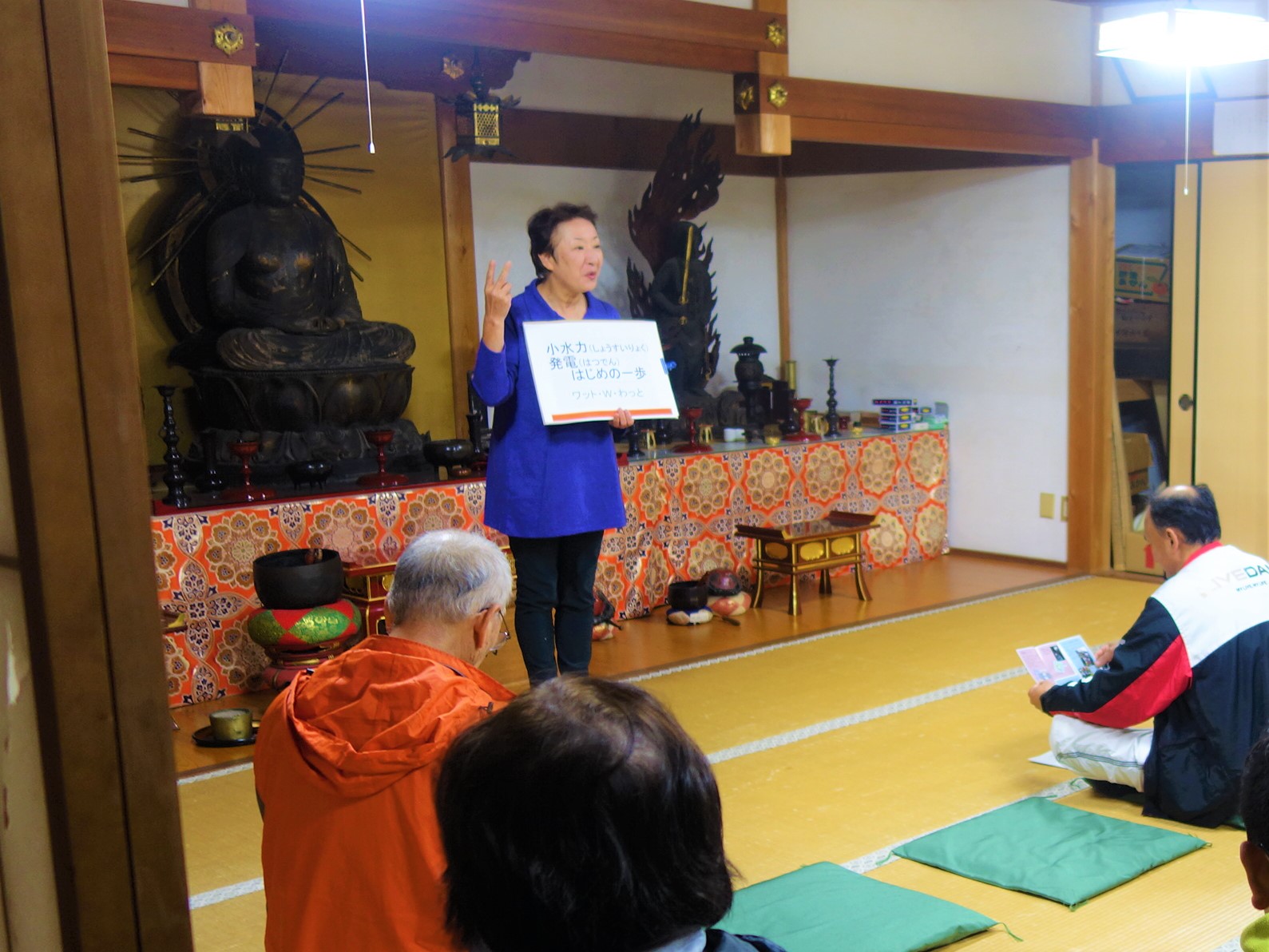 内容 小水力発電機によるLEDランプ点灯式(お披露目会)