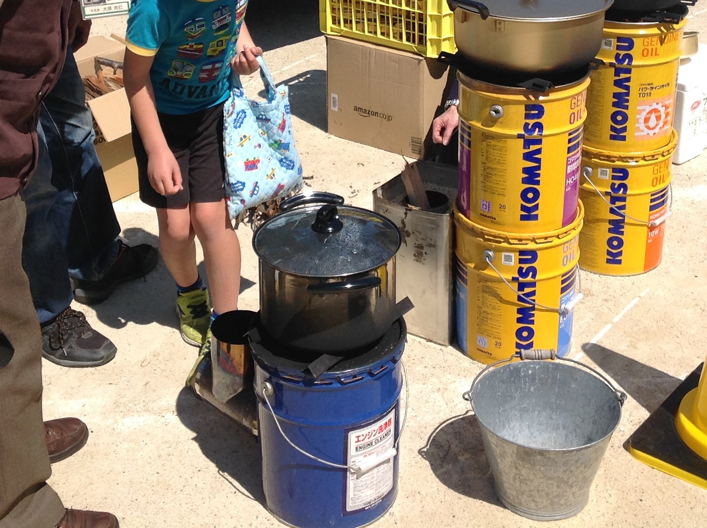 様子 天気にも恵まれ太陽熱温水器・ソーラークッカーで,水がお湯になる体験を子どもから大人まで楽しんでもらえたソーラークッカーやロケットストーブへの関心も高く,値段や作り方などの質問も多くありました。