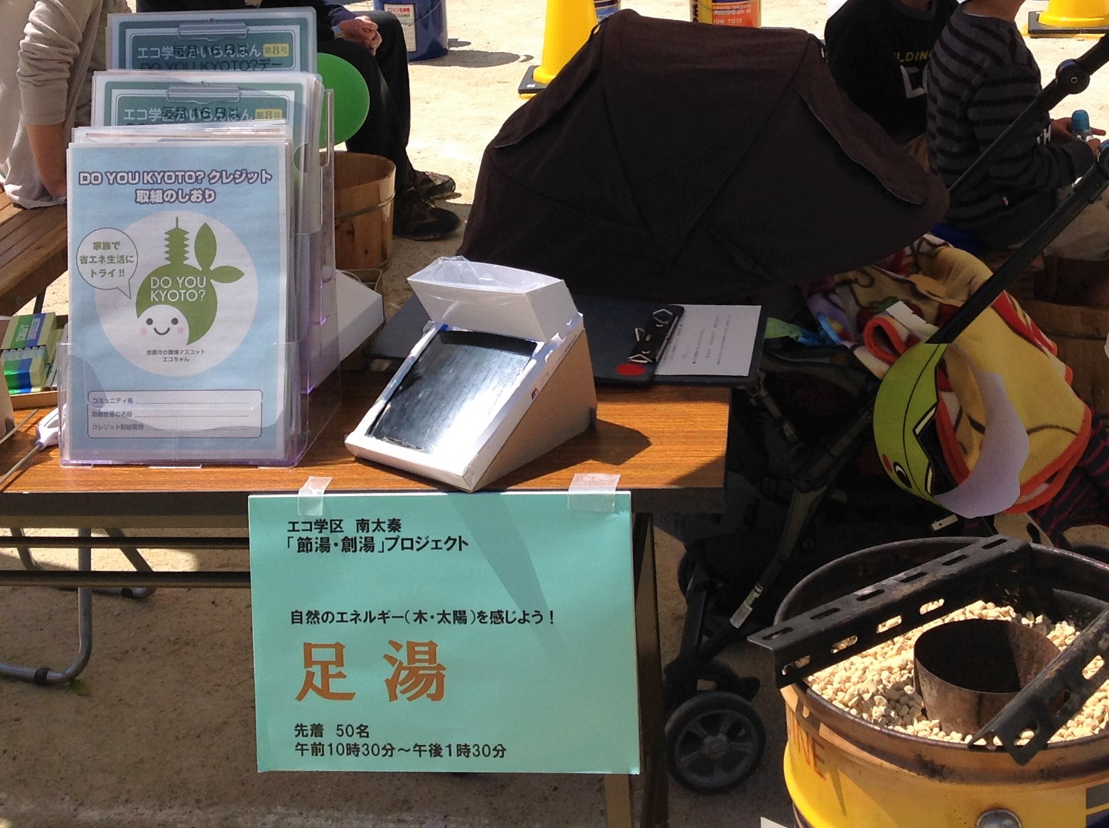 ・「ロケットストーブ」と「ソーラークッカー」を使って沸かしたお湯で足湯体験