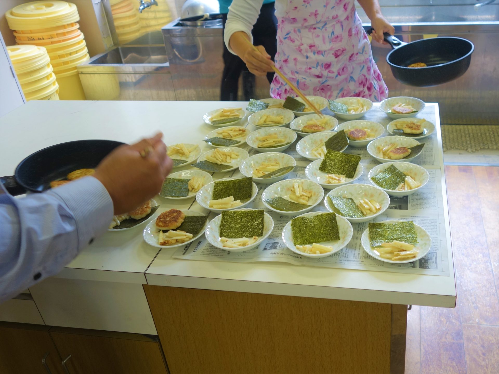 収穫した洛いもを栽培委員会メンバーが調理し試食 |