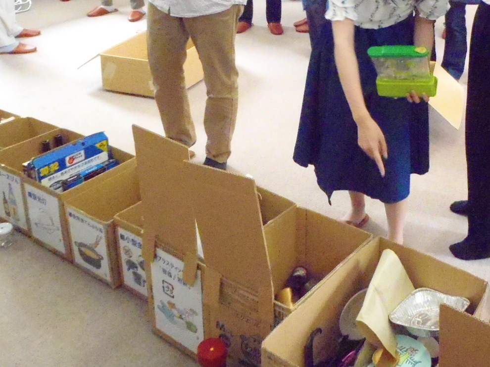 | 様子 | 分別ゲームではプラスチックや特殊紙(和紙)の分別に迷いがある方がおられた。 アンケートでも「今まで間違った分別をしていた。」や「紙のマークの種類がわかりにくい。」といった意見がでていたが「今回の学習会で正しい分別がわかった。」という声も多く,分別方法を見直していただくよいきっかけとなった。 |