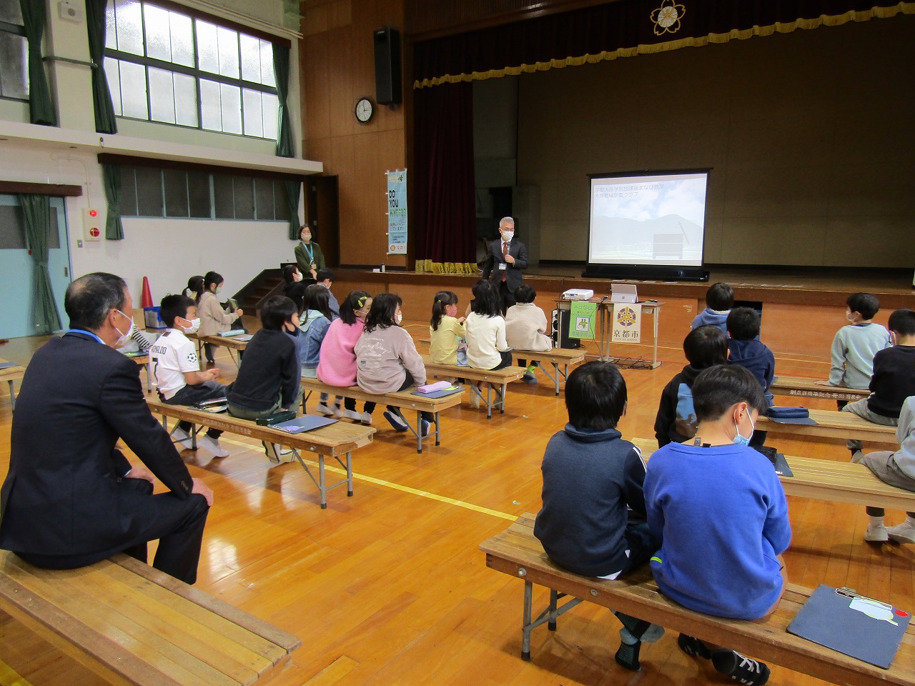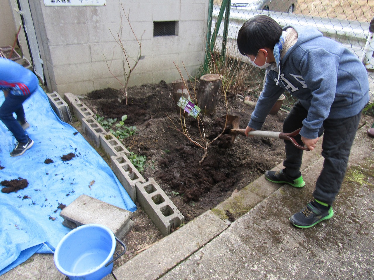 様子 前半のミミズコンポストのまとめ学習では,振り返りのクイズに積極的に答えてくれ,これまでの学習を通してミミ ズの働きについてしっかり理解してくれていました。その後,みんなで堆肥を使った土づくりを行い,全員が 土を触りながら,堆肥がどんな手触りかなどを感じる事ができました。後半は食べ物と地球温暖化の関係,フードマイレージや地産地消について学び,これまでの取組についての 理解を深めました。少し難しい質問にもしっかりと答える事ができ,最後まで集中して学んでいるようでした。最後に何人かが,今回の学習会で新しく知った言葉を使いながら発表をしてくれ,学びを吸収してチャレンジする姿勢が見られました。