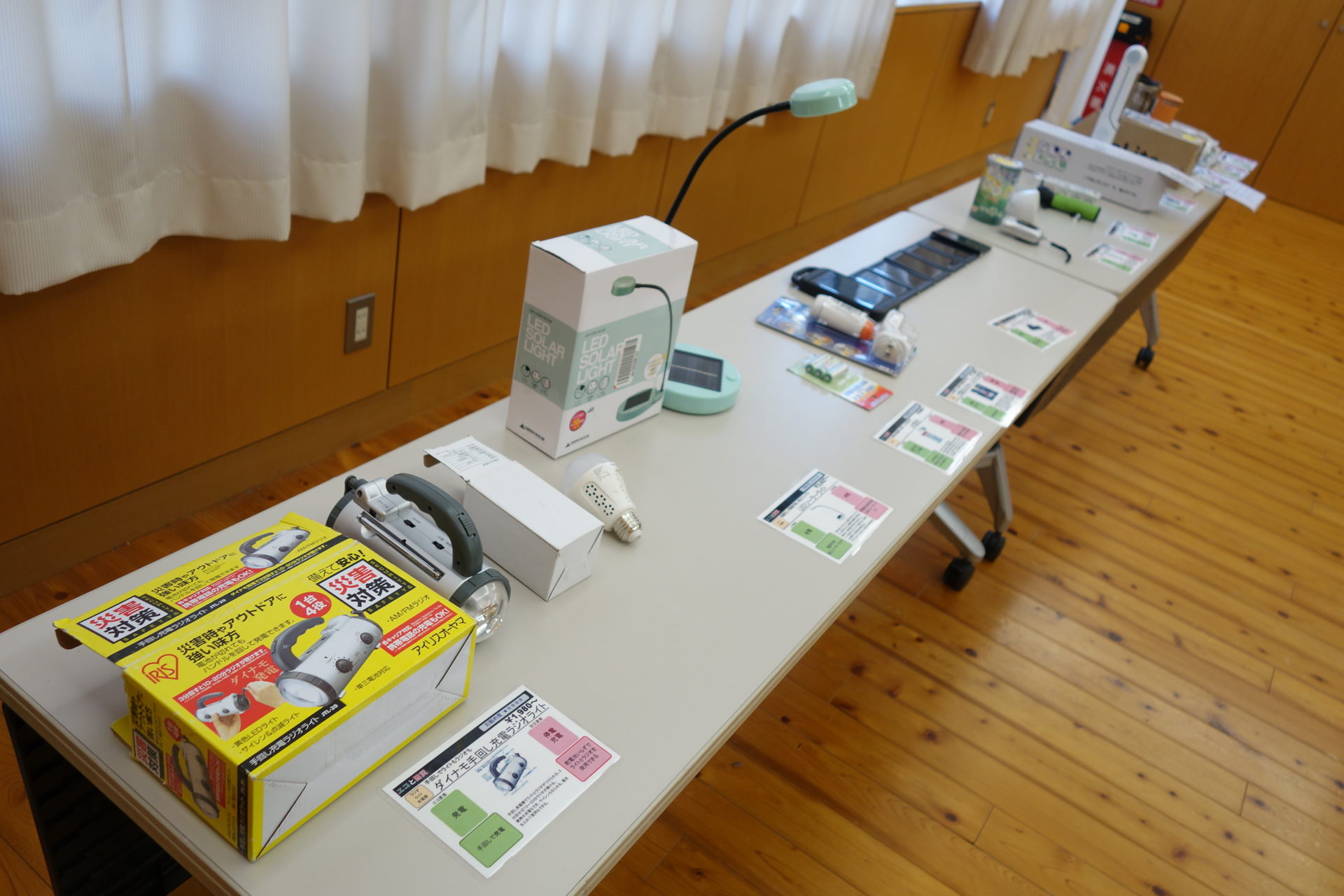 最初に会長からもエコ学区としての尚徳学区の取組について説明があり,今後の取組にも弾みがつきました。また会場に展示していた防災グッズに,多くの方が興味を示していました。