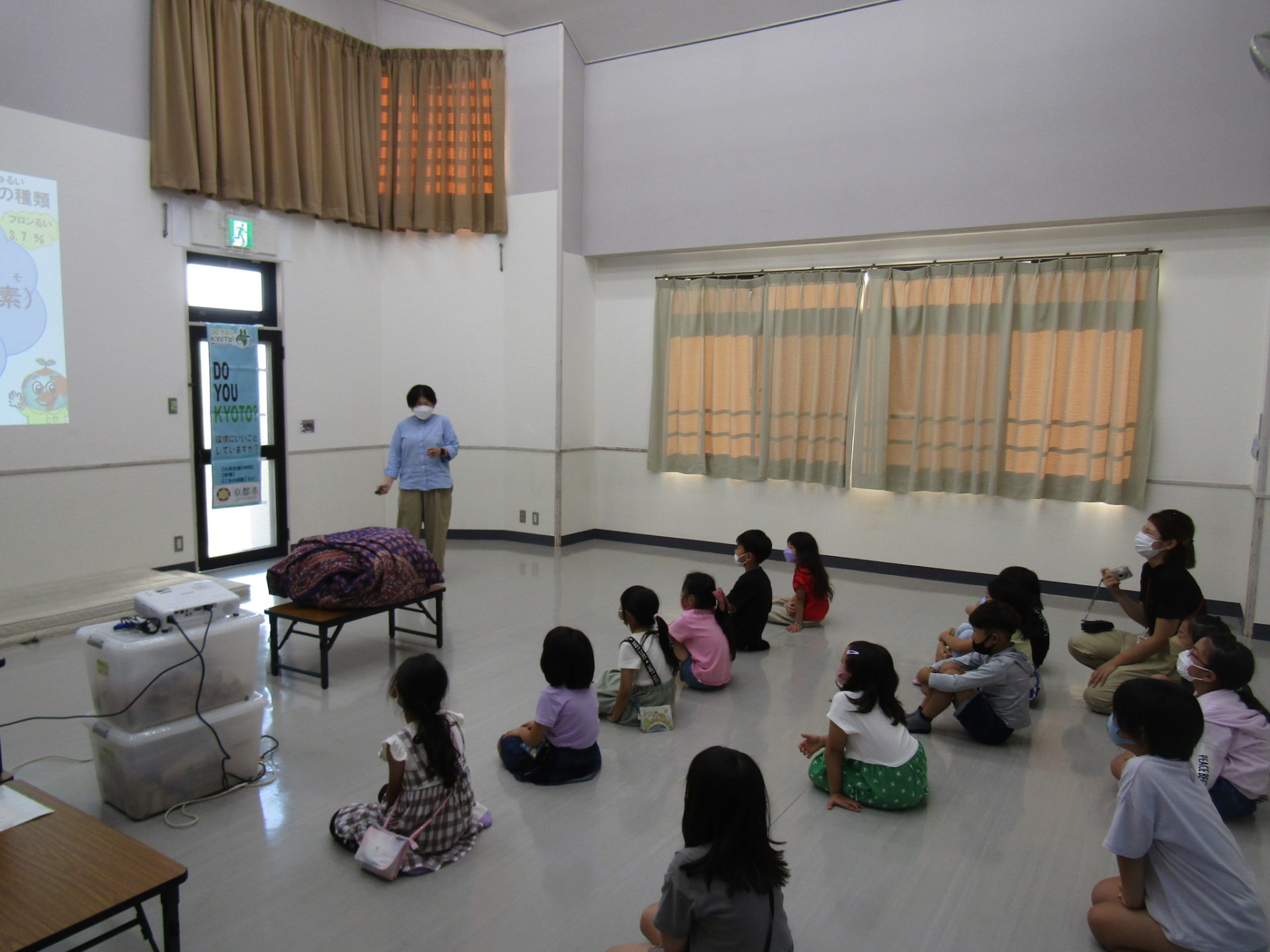| 様子 | 主に小学校1・2年生の児童が参加しており,どの児童も講師の問いかけに対して、積極的に挙手して発表してくれた。4年生の児童は,難しい質問にも回答してみんなを驚かせていました。 講師のお話をワークシートに記入する場面では,みんなしっかり耳を傾けて一生懸命記入していました。 アンケートでは「エコのおはなしを聞けてよかった!」という声が多く,学習会は好評でした。 |
