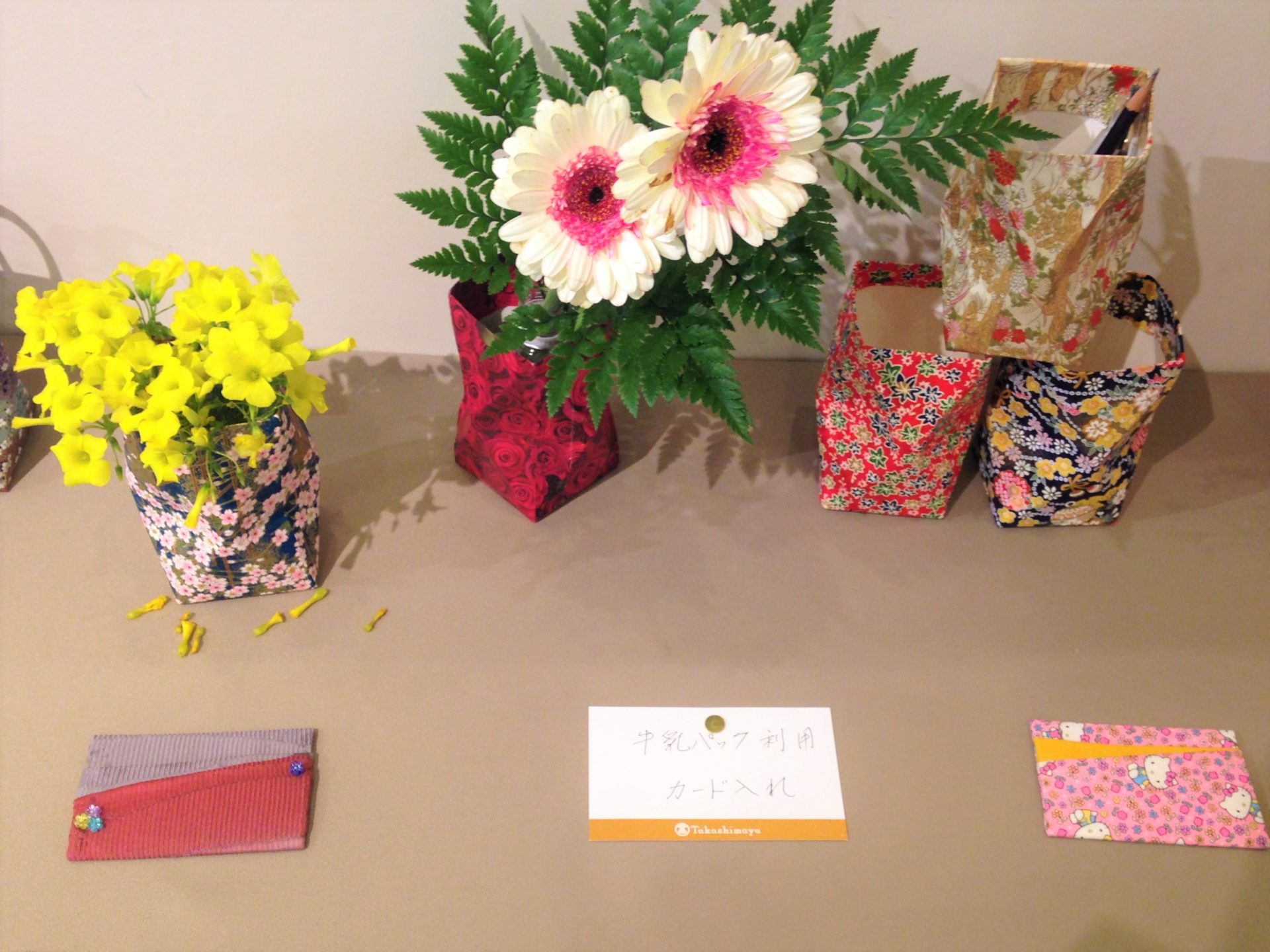 | 内容 | 大人向けリユース工作指導者養成講座牛乳パックと布地をリメイク! 「カードケース」「牛乳パック駒」 |