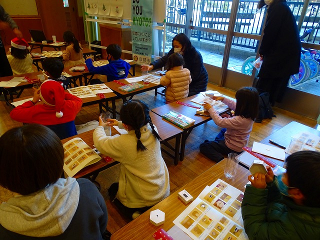 | 様子 | ソーラーLEDライトのキーホルダーを使ってランタンづくりを行いました。ソーラーパネルに関心を持つ参加者も多く,完成後は室内の電気を消し,ランタンのあかりだけで遊戯室を照らし,幻想的な世界を楽しむことができました。児童たちから「楽しかった。」「身近にある物でランタンをつくれることがわかってよかった。」といった感想をいただきました。また,小さいお子さんと参加された保護者の方からは「3歳の子どもでもボンドを使って楽しくできました。」という感想をいただきました。 |