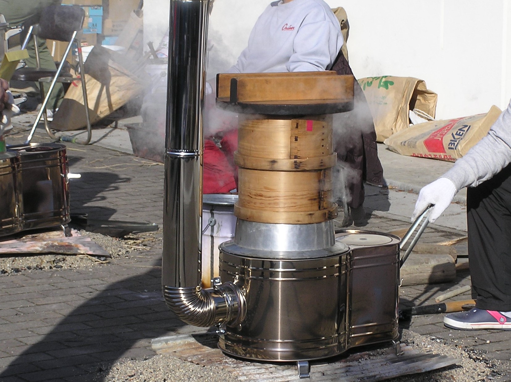 様子 支援物品の「薪ストーブ」を活用しており,多くの子どもが参加していました。地域の方が紙芝居を実施されていました。