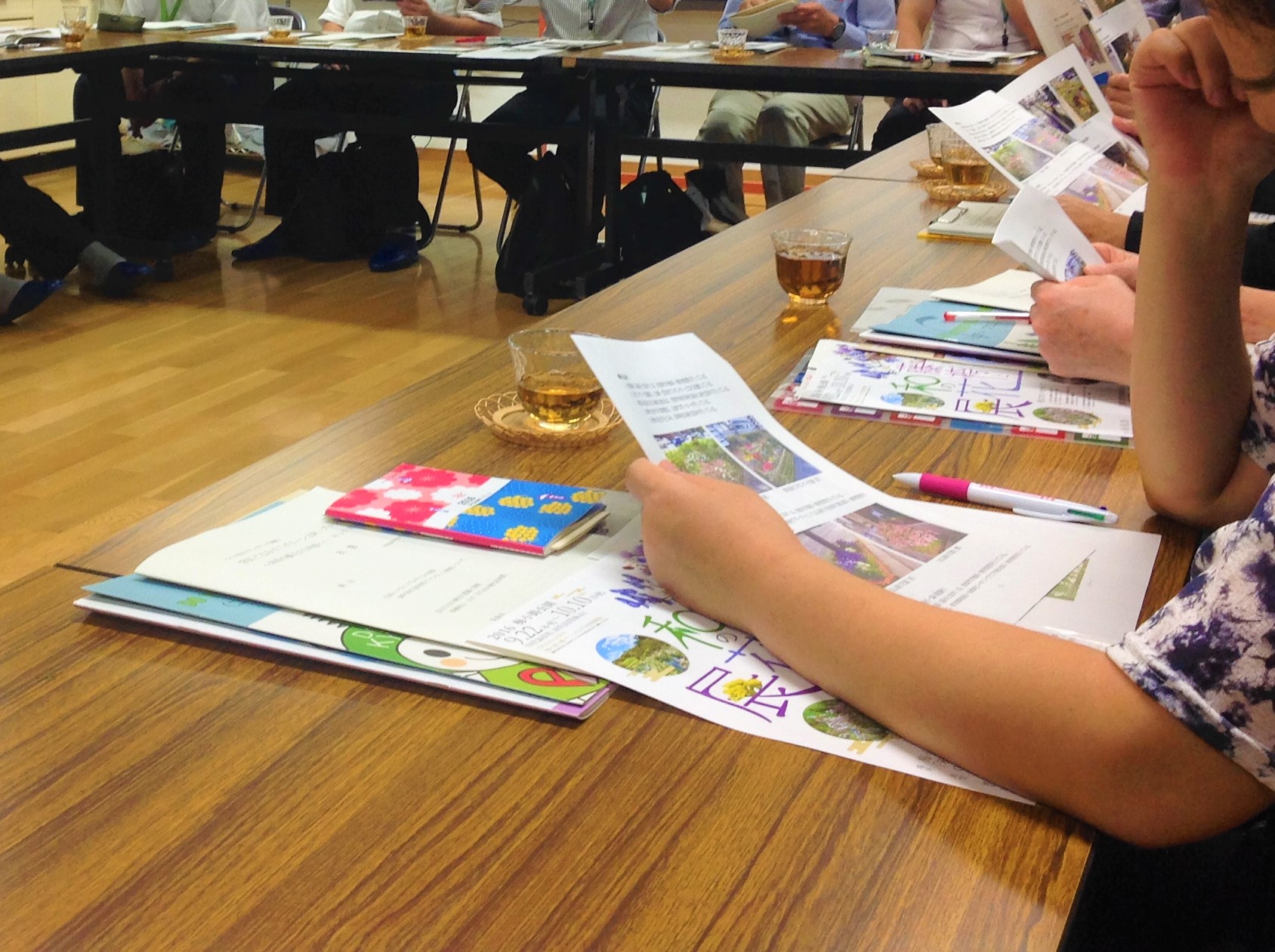 様子 温暖化の話から朱雀第四小学校の取組である「いのちの庭」を地域に広めたいことを伝え,クレジットに関しても理解していただきました。今回は自治連合会とPTAの2チーム対抗で省エネ実績を競うことになりました。また,学区を緑化するためのシンボルとなる植物をみんなで決め,参考として海外や京都市での取組事例を紹介しました。