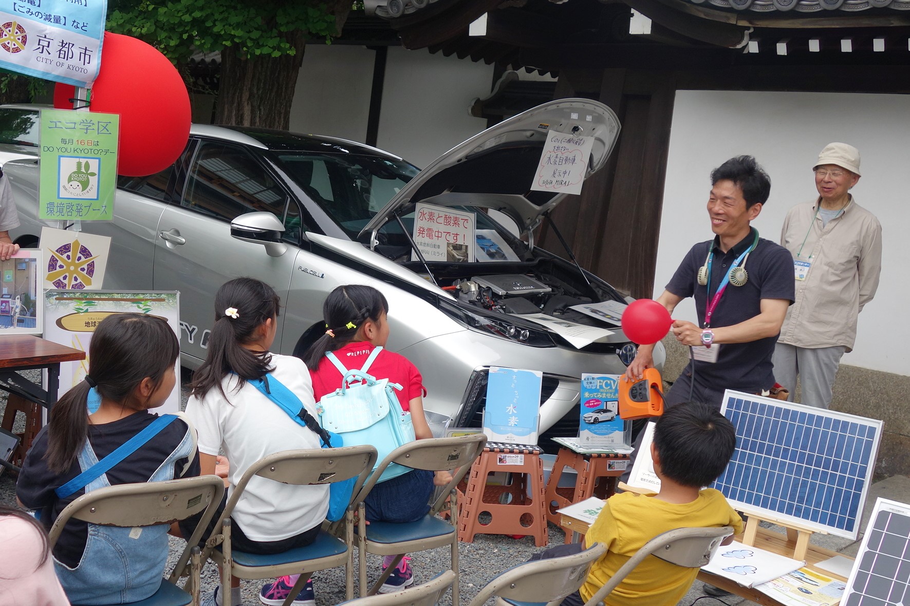| 内容 | ・エコ推進委員の小学生による学区の活動紹介 ・地球温暖化と自然エネルギー発電の仕組みについての学習 |