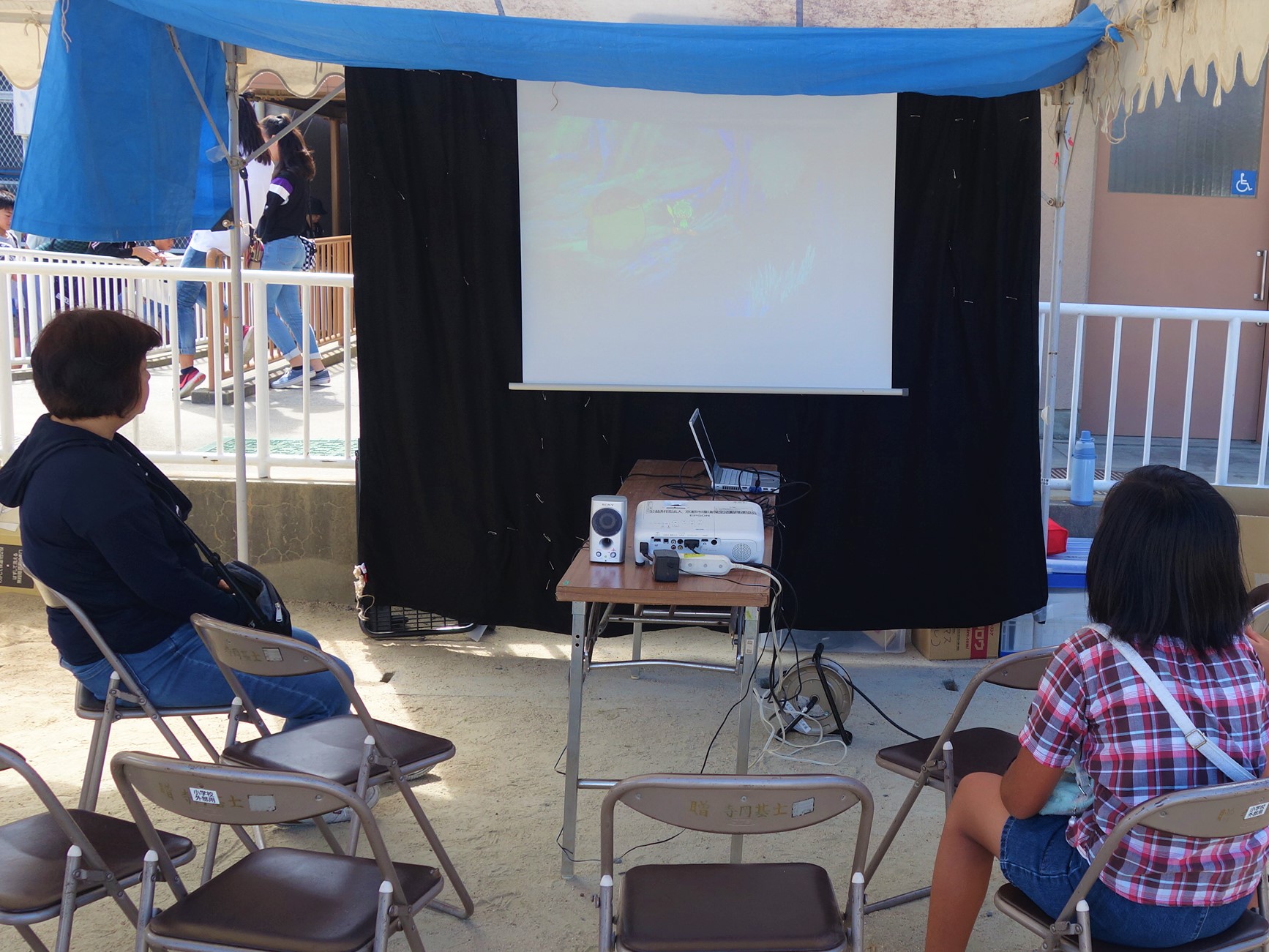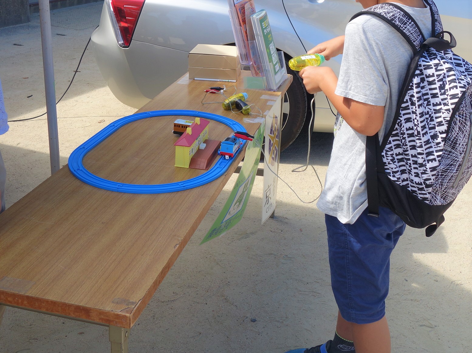| 様子 | ブースには何度も参加する子どもが多く,にぎわいました。DVDは子ども向けであったが大人の方も視聴していました。また水素自動車による電源供給について興味を持たれる方もおり,質問もたくさんいただきました。 |