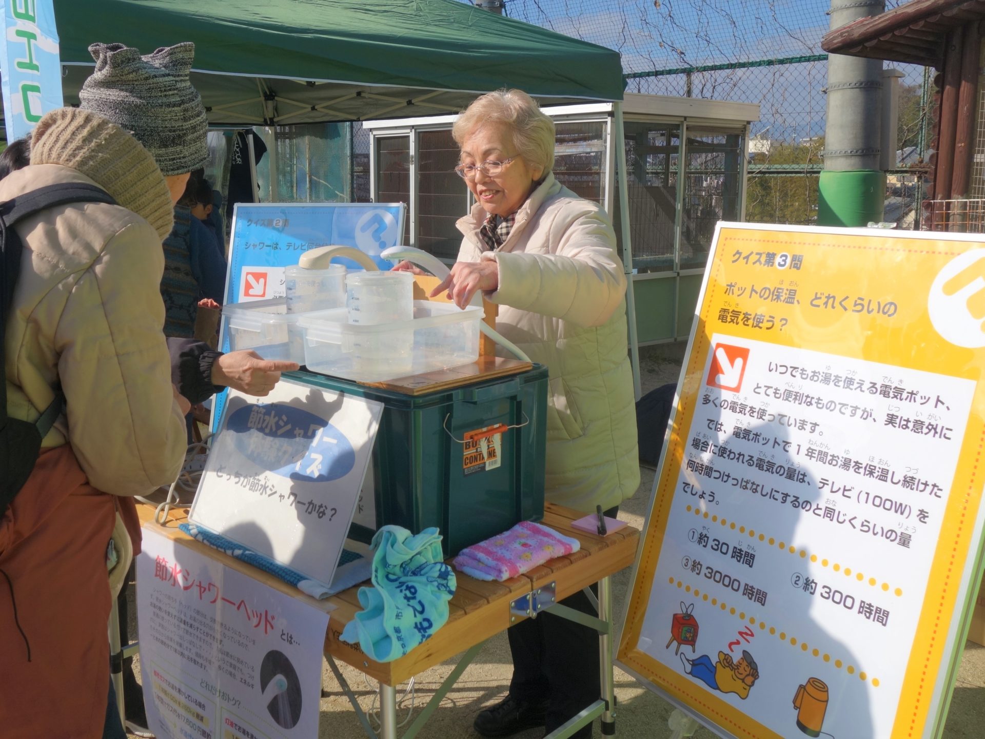 内容 省エネ相談所と節水シャワーヘッドや太陽熱調理器を使った家庭の省エネ体験ブース出展
