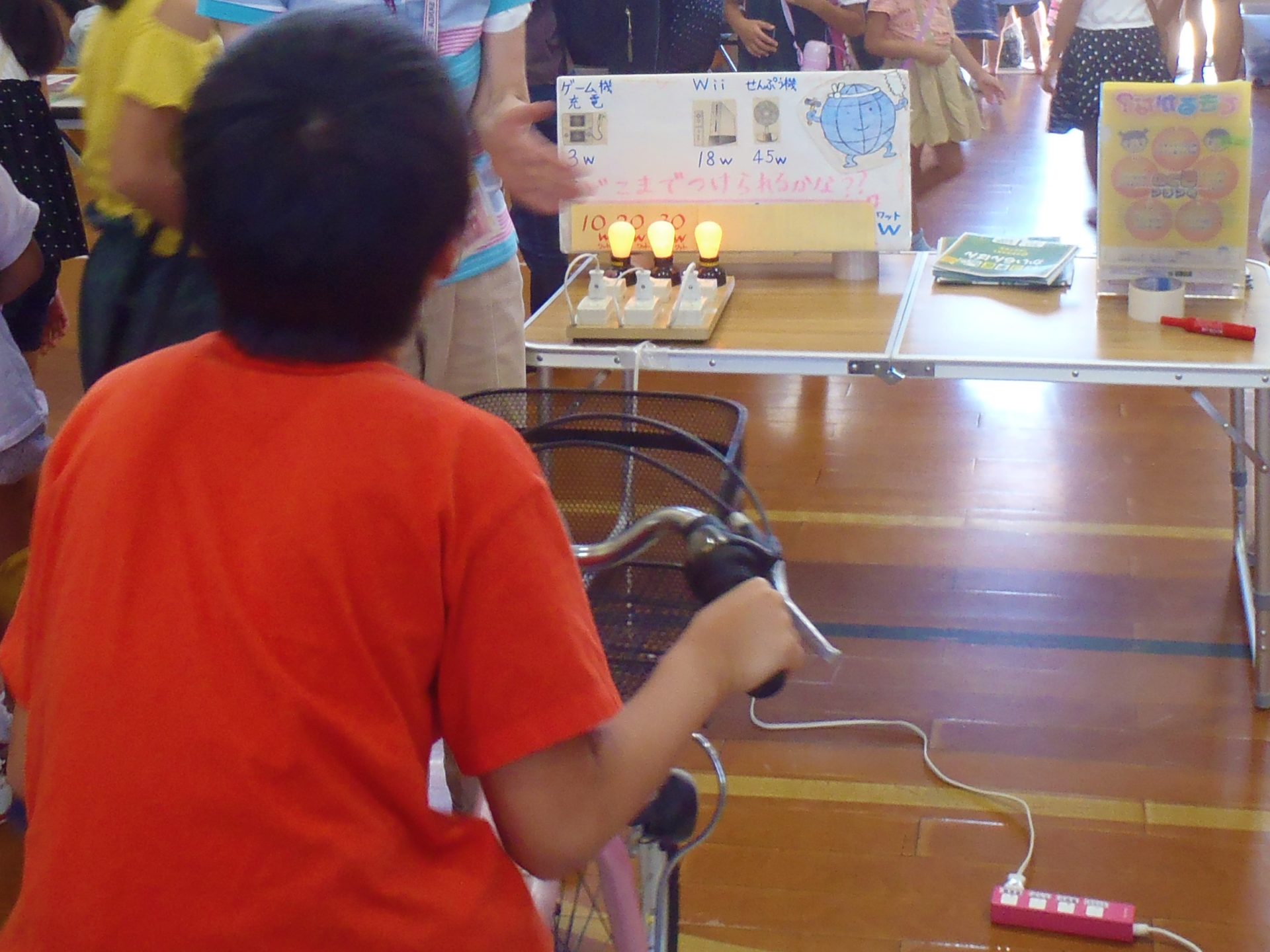 | 様子 | ごみ分別カーリングも桃山エコクイズも行列ができるほど盛況だった。クイズでは,桃山学区のエコの取組を交えたオリジナルクイズをPTA役員が作成しわかりやすく解説した。アンケートには「クイズでエネルギーの大切さがわかったので,これからは節電する。」と書かれていた。カーリングでは,子ども達は分別の仕方を概ね理解しているが,紙コップの分別を間違えやすいということがわかった。スタッフをしていたPTA役員と,節電や省エネについて情報交換し「停電になった時のために各家庭での蓄電機や充電機が必要。」という意見をいただいた。 |