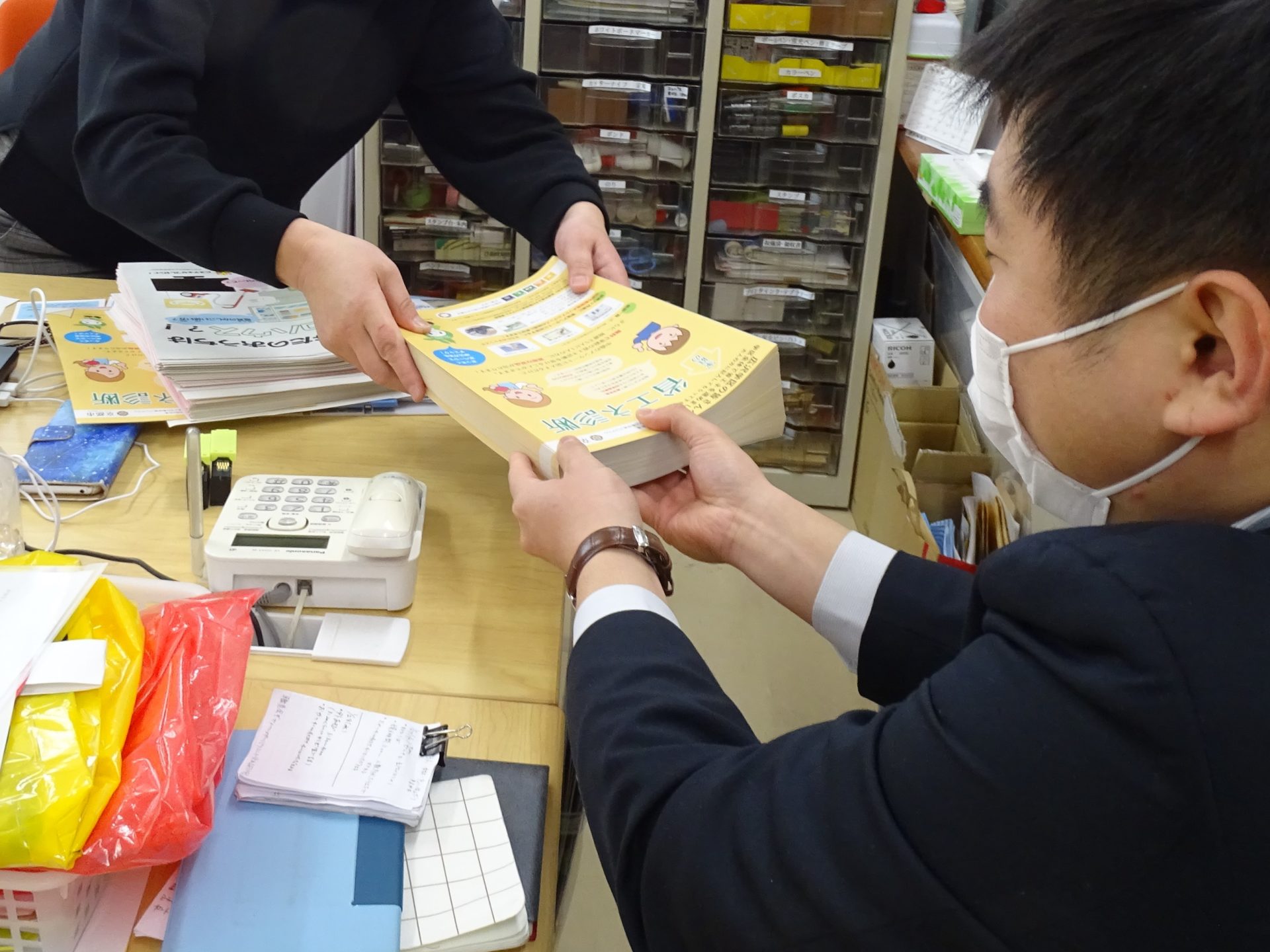 | 様子 | コロナ禍で学習会やブース出展の開催が難しいため,児童館で環境啓発冊子を配布していただくことになり,館長に冊子の内容(地球温暖化の基礎知識と家庭でできる省エネ対策)について説明を行いました。 |