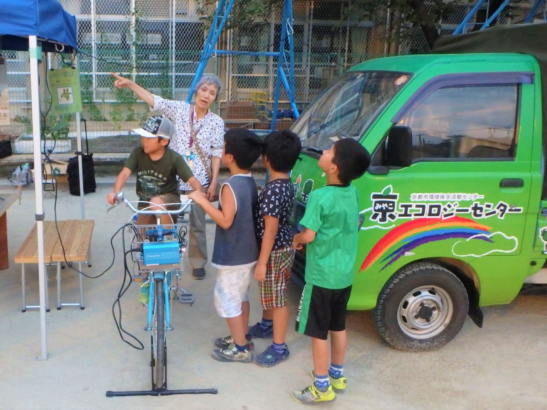また,西京住民防災ネットワーク(紙芝居ブース)と協働し太陽光で充電したバッテリーを利用してLED照明を実施でき,喜んでいただけました。