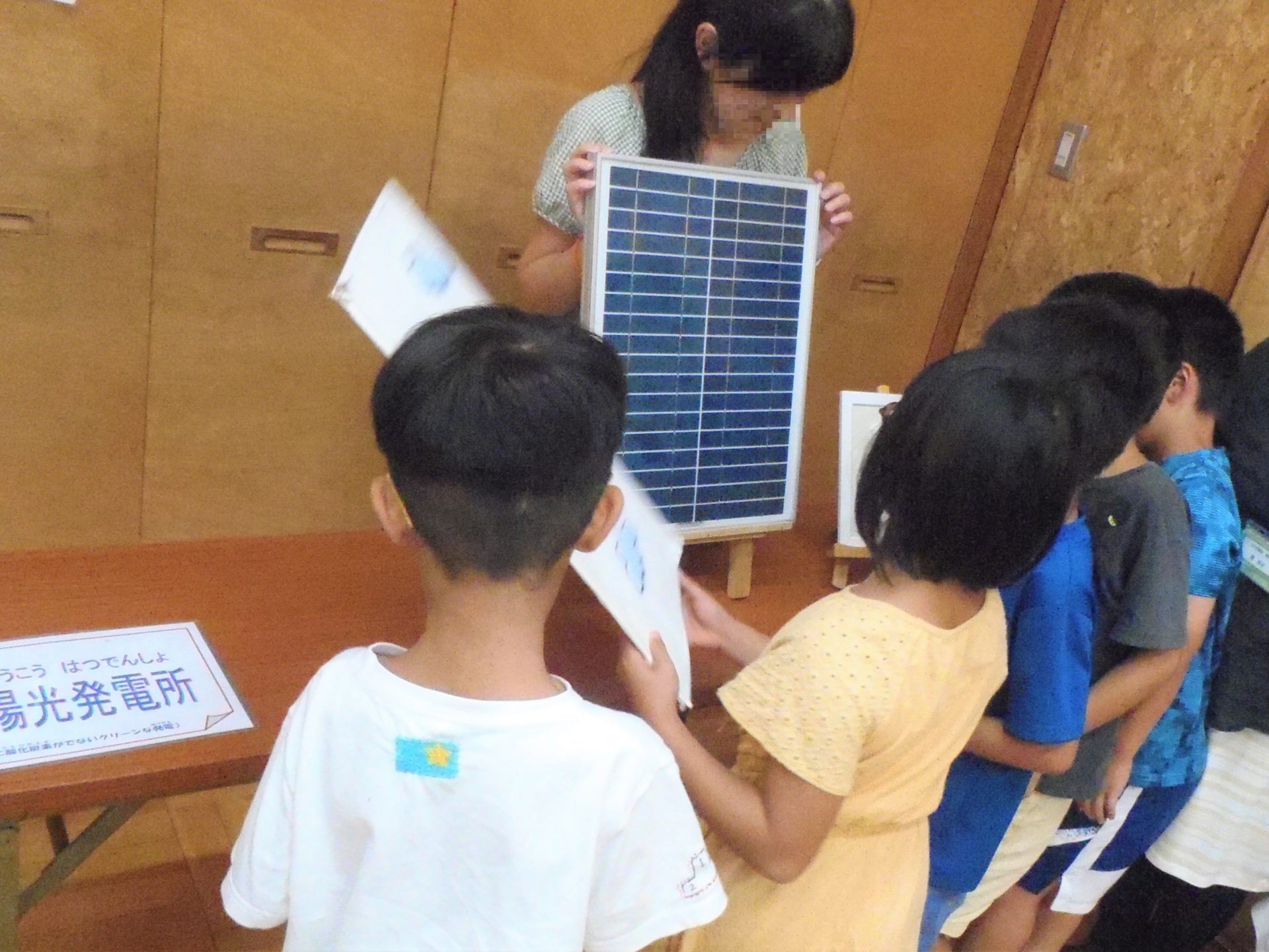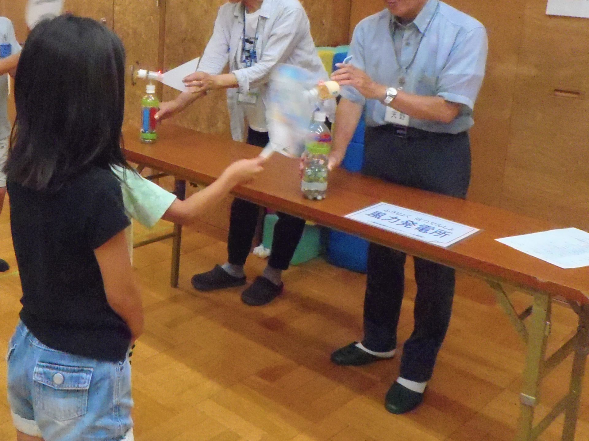 発電体験と水素自動車(MIRAI)の展示が好評で,自然エネルギーで二酸化炭素排出がないことの質問が多くありました。児童館の職員の方が発電体験の係を担当してくれ,子ども達が発電の仕組みを自分たちで考えられるように丁寧に説明していました。