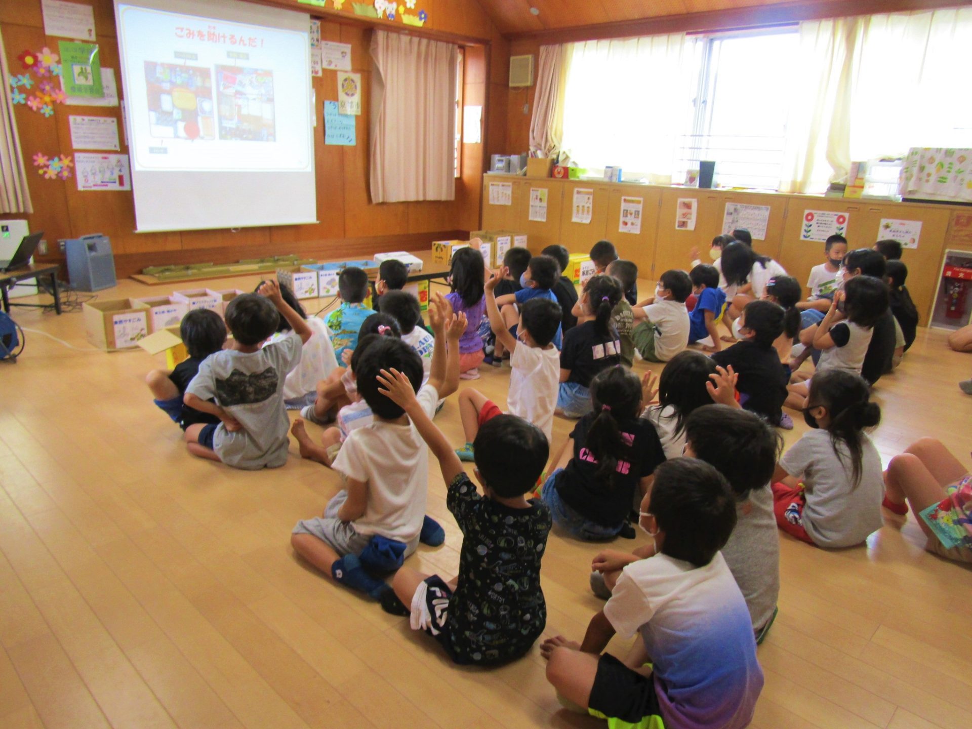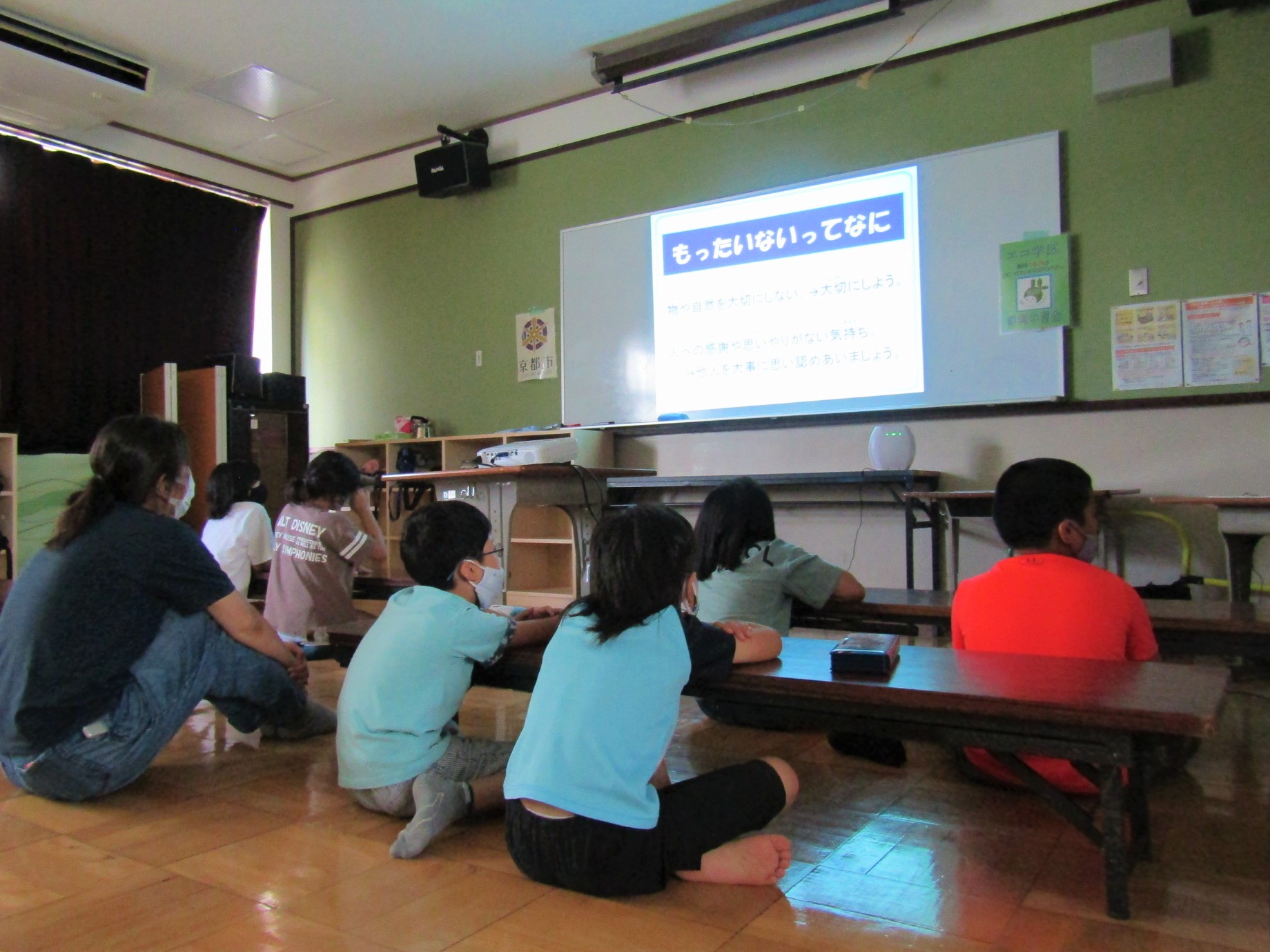 様子 第1部・第2部ともに,子ども達に好評でした。ごみ分別ゲームでは「一発で分別できたよ!」と誇らしげに教えてくれる子が何人もいました。判定員を務めてくださった先生も,子どもたちに対し丁寧に,分別方法を教えていました。 高学年向けの「食品ロスカードゲーム」も大変盛り上がり,終了時に「もっとしたい!」「また来てほしい!」と言ってくれる児童が多かったです。アンケートには「もっと環境問題を意識したい」というコメントもあり,楽しみながらしっかりと学んだ様子でした。