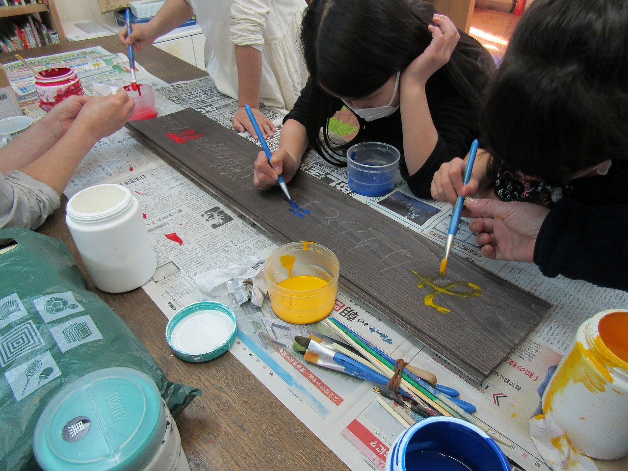 ありました。その後,子ども達で花壇に飾る看板作りを行い,自分たちが見たミミズがどんな色をしていたかなどを話し合いながら、たくさんの絵を書いてくれ,完成することができた。(看板の材料となる板は,学童スタッフ持参した廃材を使用しました。)大人達はブルーベリーの苗を植える位置を決めて,花壇の整備を行いました。ブルーベリーの苗は地域内の農園から購入したもので,学童児童の保護者ということもあり,作業中お迎えに来られた際に,さまざまなアドバイスをいただきました。また作業がお迎えの時間帯と被っていたこともあり,たくさんの保護者の方に取組をお伝えすることができました。 |