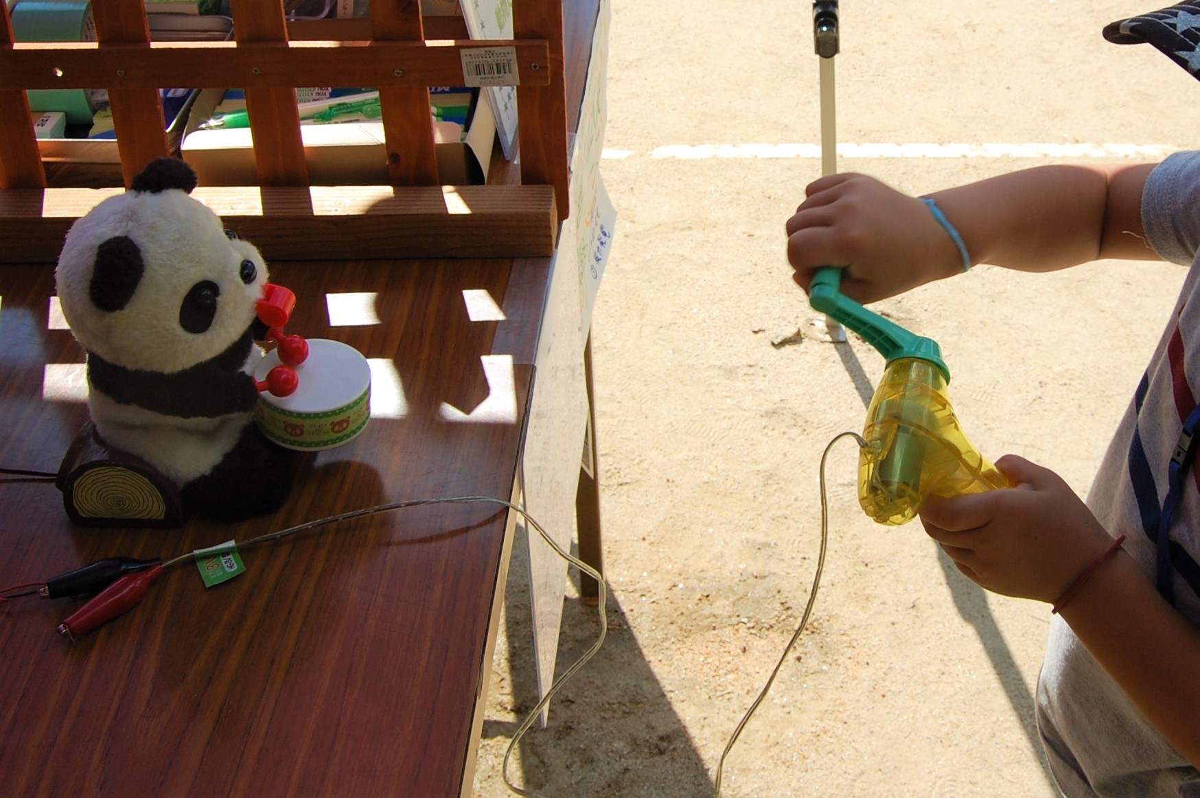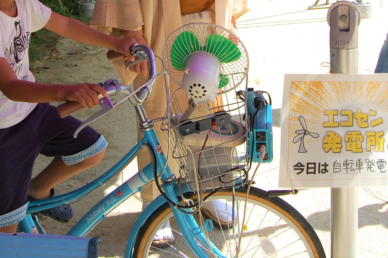 内容 発電体験ブース(自転車発電・手回し発電・風力発電)と電気自動車の展示(アイミーブ)