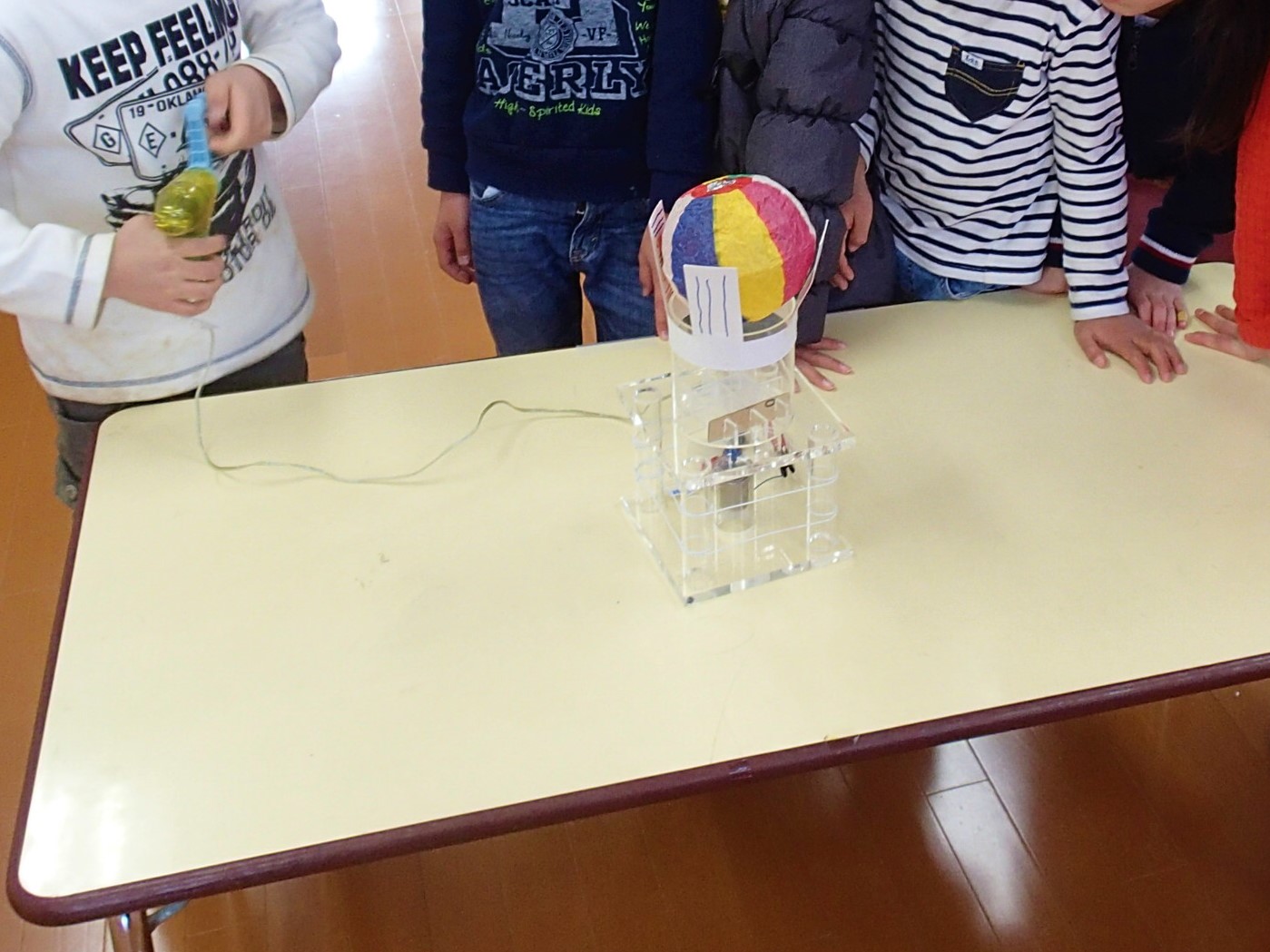 様子 1年生から6年生までの子ども達が参加してくれた。手回し発電を楽しんでくれていたり,水力発電に驚いていたりと全体として喜んでくれていた。