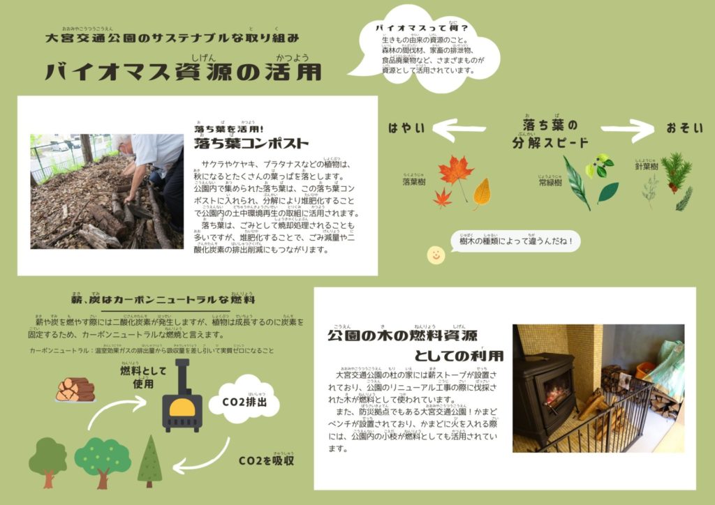 大宮交通公園を中心に、身近な自然環境の保全や木質バイオマス利用者の取組を広げる等、