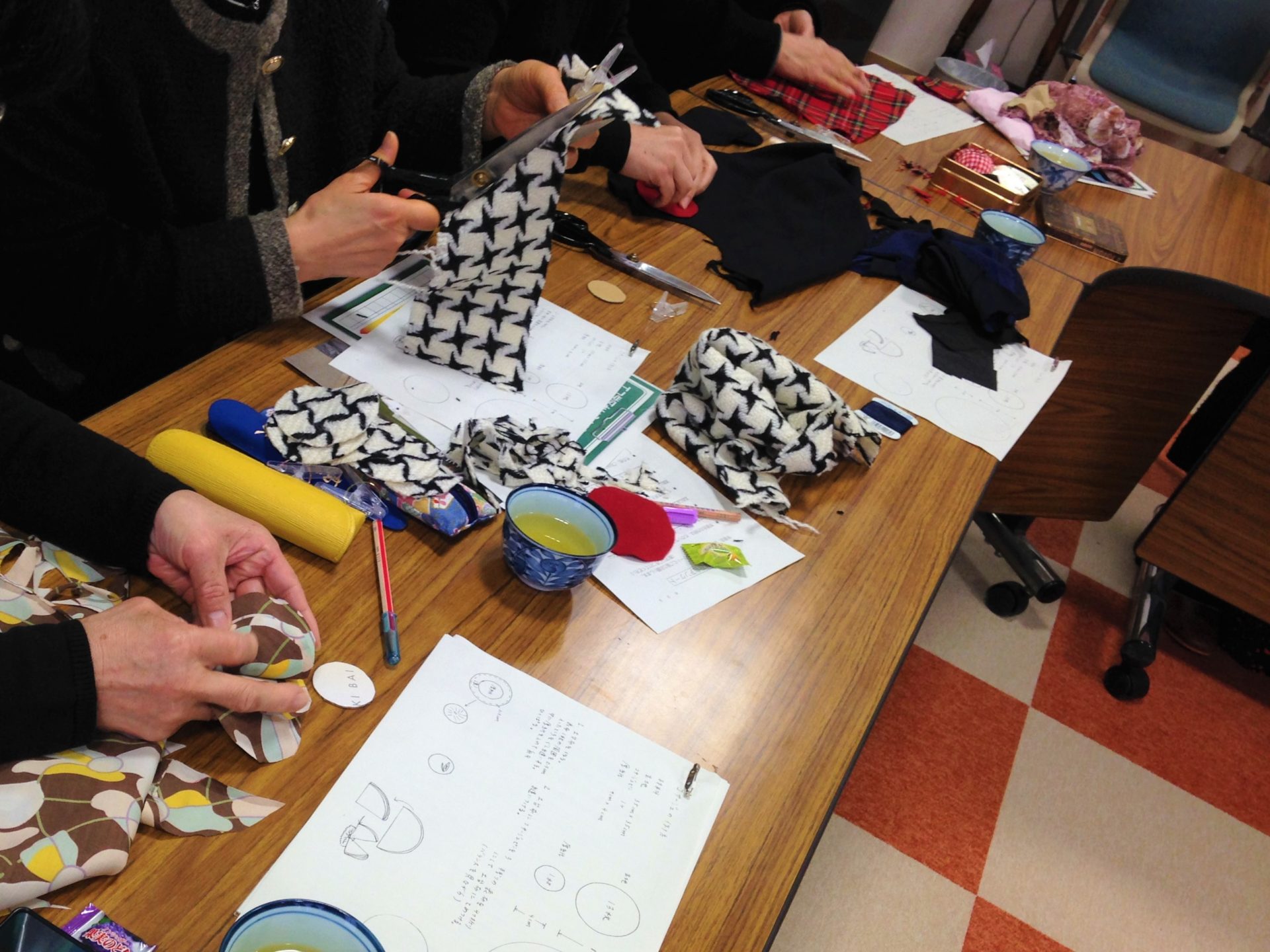 | 様子 | ごみ減量について,ごみ処理にかかる費用や最終処分場の話があり,衣類の再利用の意義と,何よりも楽しく活かす取組の重要性について学びました。 講義の後はコサージュ作りに取り掛かり,参加者の方々は作品を完成させました。最後に参加された方々から一言ずつ感想の発表があり「難しそうだったけど思ったより簡単で,子どもともできそう!」という声がありました。 |
