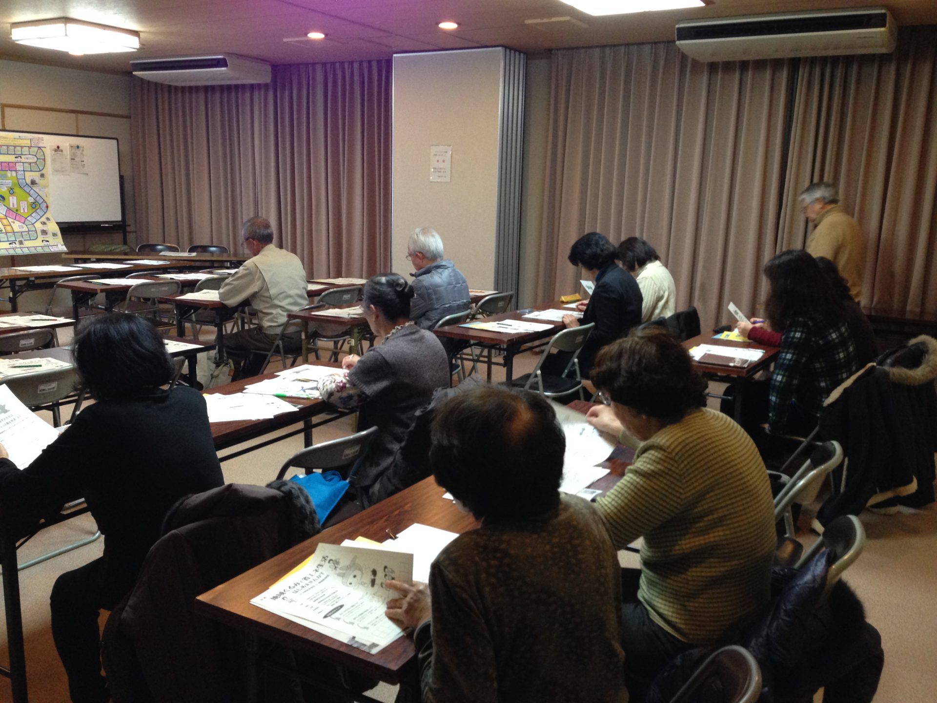 | 様子 | 地域での台風の被害などを取り上げながら温暖化のメカニズムについて学んだ。途中にクイズなども取り入れ「どのように生活すればエコにつながるか」を参加された方々と一緒に考えた。 醍醐西学区では地域ごみ減の活動が熱心で,役員メンバーがマップを作ったものを学習会の冒頭でお披露目してもらった。 |