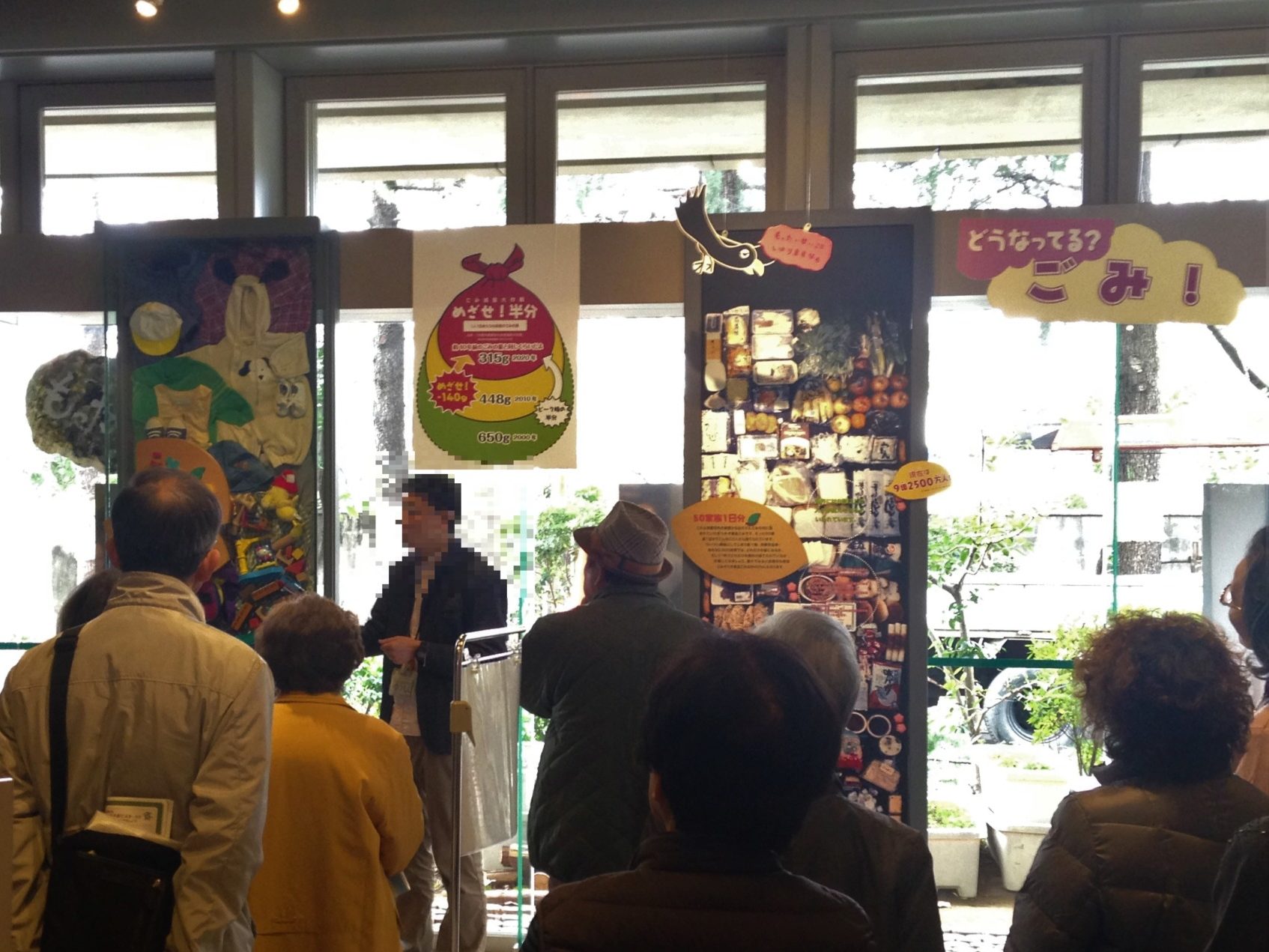 | 様子 | 京エコロジーセンター見学では, 1 日に使用される水の量や,捨てられるごみの多さに関心が集まりました。 料理教室では「使いキリ・食べキリ」のレシピで食材を余すことなく使い料理する方法や,生ごみ堆肥の作り方や効果などを写真を使いながら説明し,参加者の方々は熱心にメモを取りながら学習していました。 |