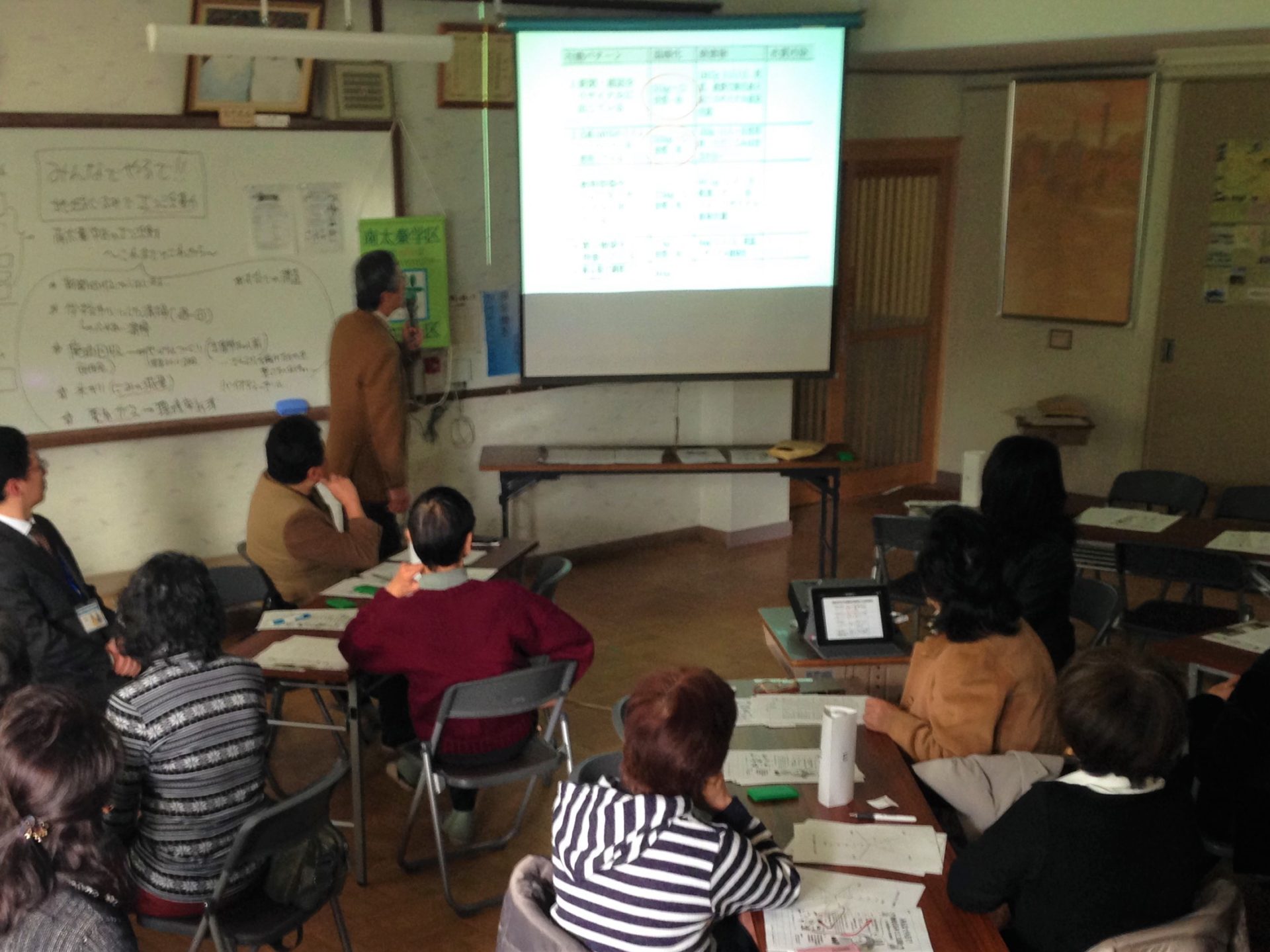様子 今まで学区で取組んできた地域ごみ減の活動を紹介しエコポイントチェックのプログラムを体験しました。