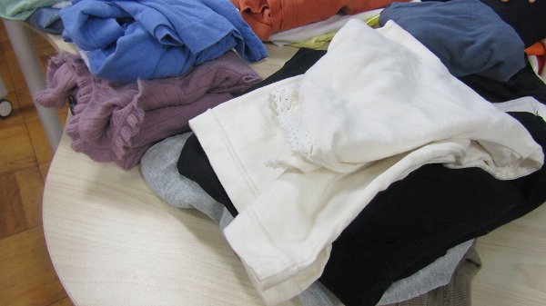 仕分け中に見つけたお気に入りの服は持って帰ってもOKとしていたので仕分けが終わった後も、「どれがいいかな?」と時間をかけて悩んでいる様子が見られました。