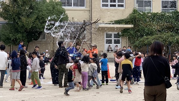 そしてお祭りの最後には石鹸田泡男さんのシャボン玉ショーが開催されるとのことで、子どもたちもたくさん集まり、とてもにぎわっていました!