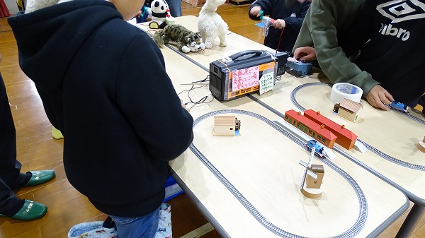 私たちのブースでは太陽光発電の電気を使ってトーマスを走らせたり、手回し発電で動物のおもちゃを動かす等、子どもたちには発電体験を通して自然環境について学んでもらいました。