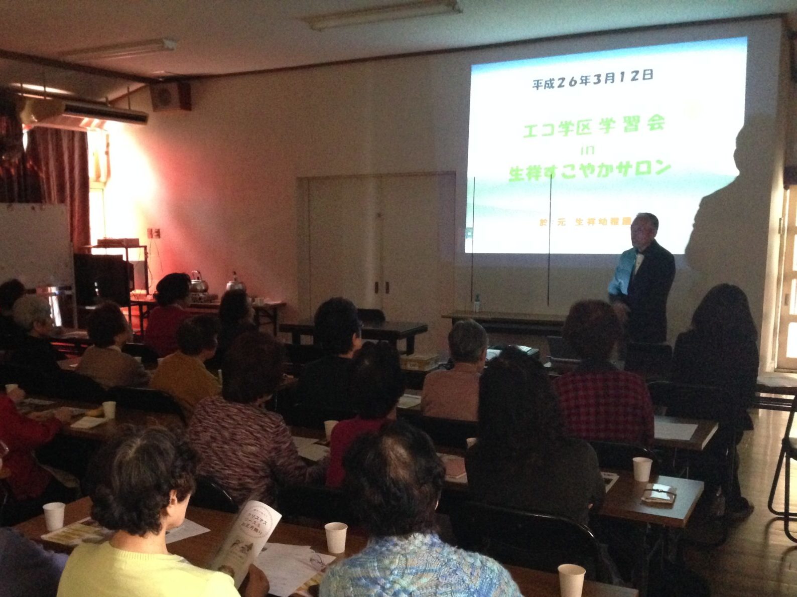 様子 講師の実体験を基に,家庭でできる省エネ技を紹介し,参加者のみなさんは最後まで熱心に話を聞いていました。学習会実施後のアンケートにも「これから実践していきたい。」という意見が多くありました。