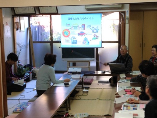 | 様子 | 省エネナビを設置してkらの省エネ生活についての感想を尋ねた。「寒くなってきてので暖房を使ったら怒った顔になった。」とナビをしっかり意識して生活されている様子や「炊飯器の保温をやめた。」など具体的に実践されている取組を聞き,参加者の中での意識や行動の変化を見ることができた。 |